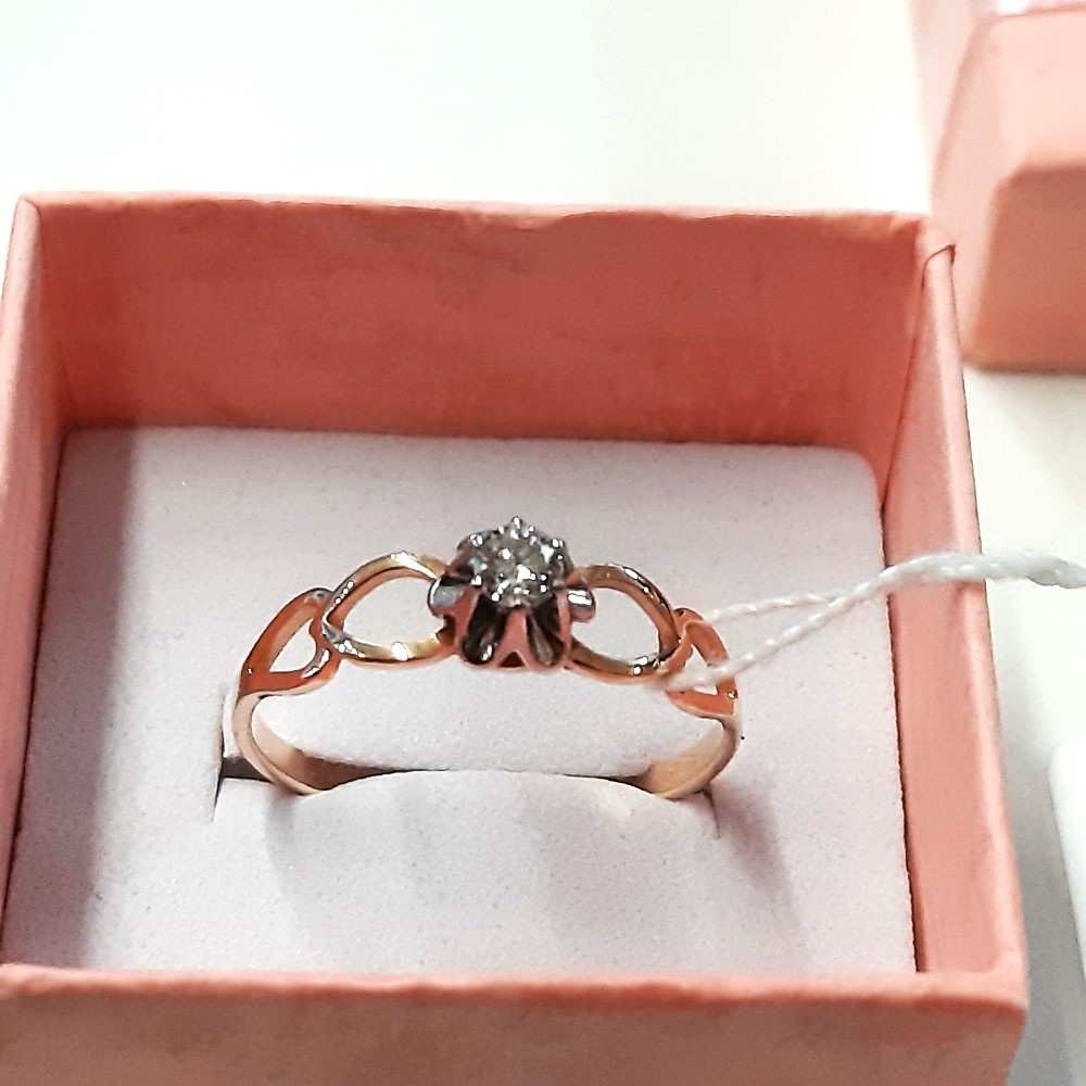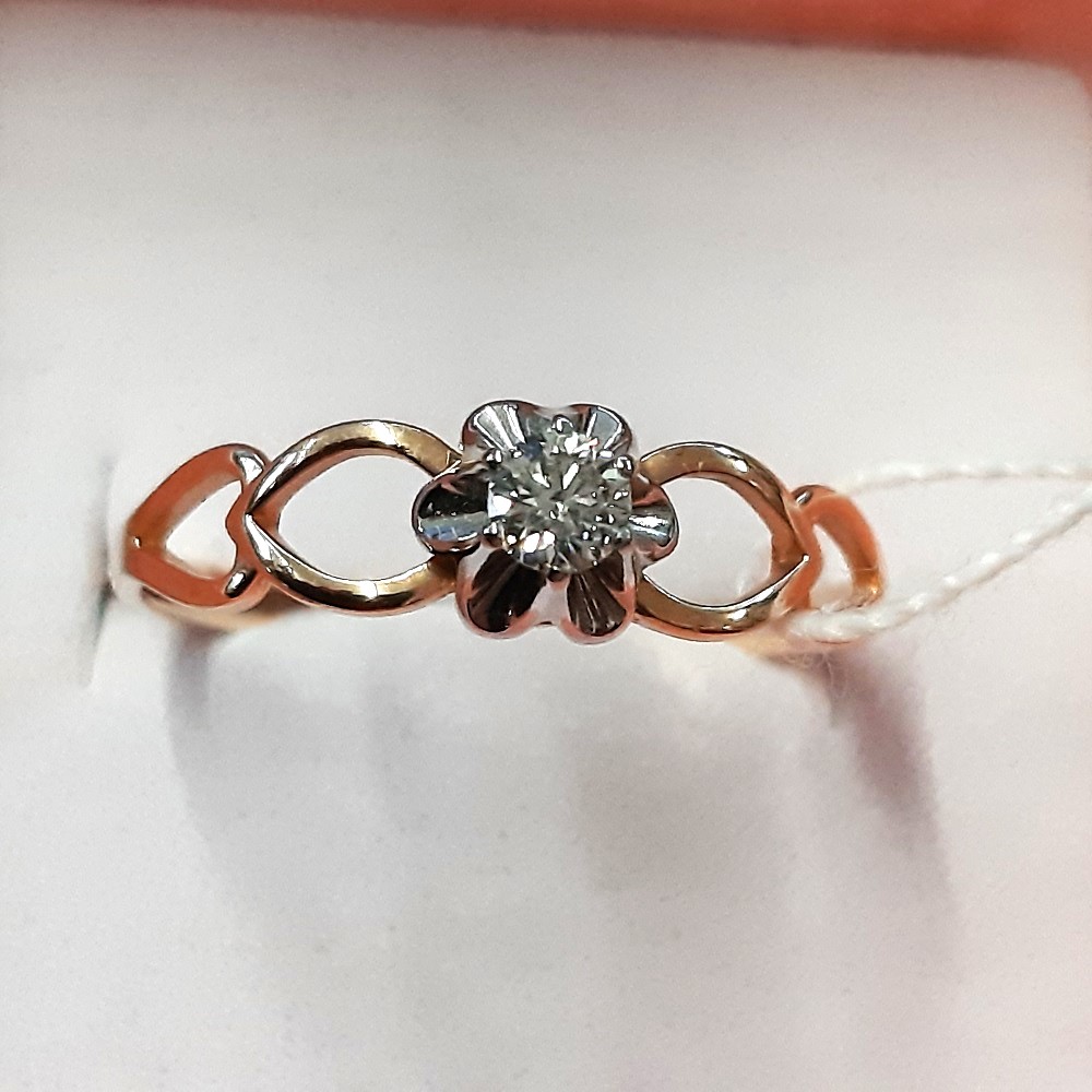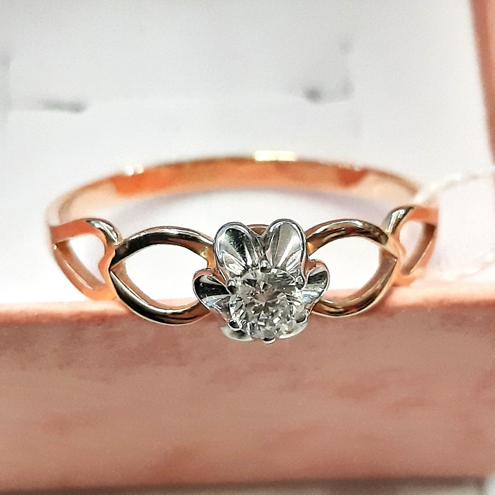 Ring aus Rot/Weißgold 585° verziert mit 1 Brillant 0,119 Ct. 4/6 A кр-57 (H)