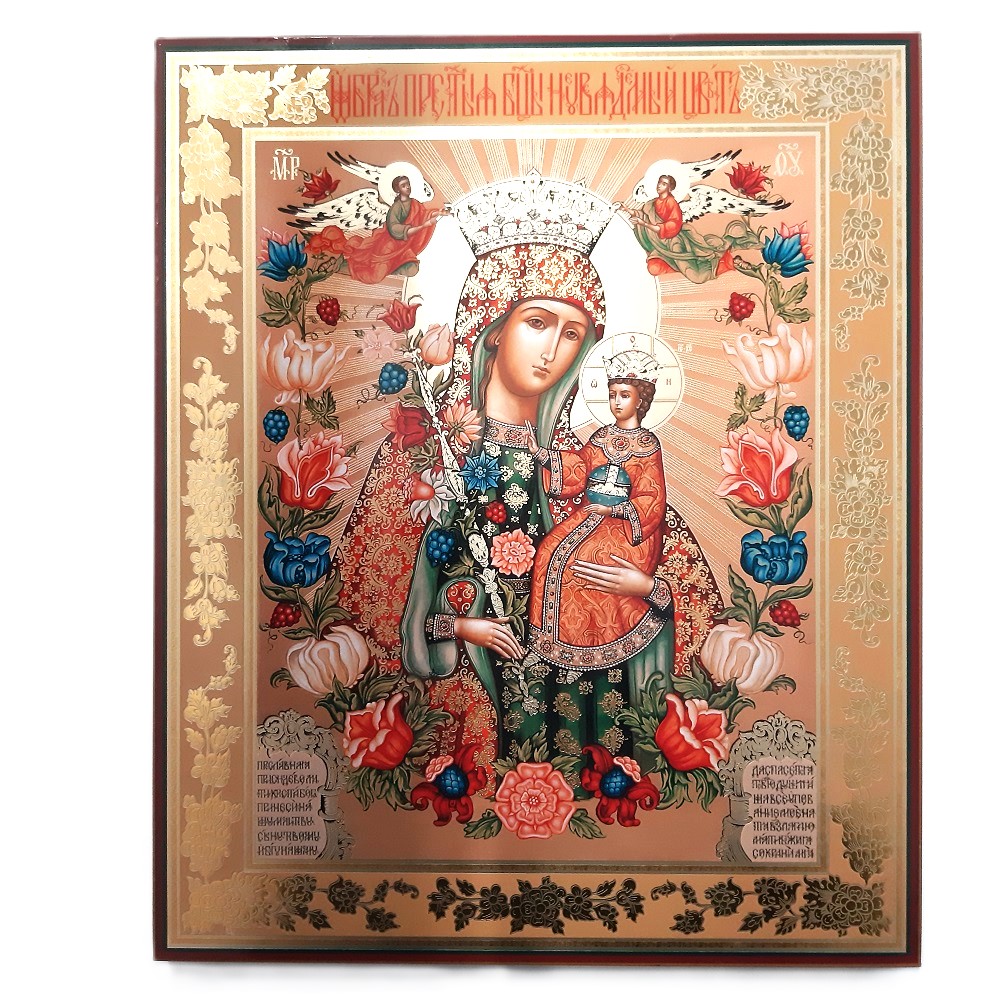 При обращении к иконе Богородицы «Неувядаемый цвет» молятся о сохранении праведной жизни, разрешении семейных неурядиц. Молитвы к этой иконе помогают не ошибиться в выборе супругов.